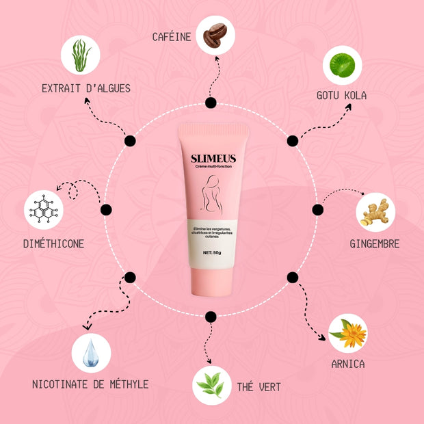 Avec une application régulière, les vergetures et cicatrices s’estompent visiblement, révélant une peau plus lisse, uniforme et une silhouette redessinée.